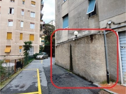 Piena proprietà di un box situato nel quartiere di Sestri Ponente, di circa 36 mq di superficie, dotato di serranda metallica e locale ad uso servizio igienico di circa 4 mq.