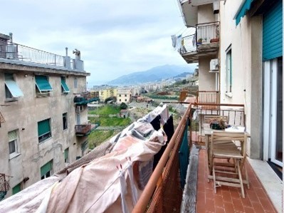 Intera piena proprietà dell’appartamento ubicato a Genova (GE) - salita Lorenzo Cappelloni (delegazione di Prà a Genova), edificio 8, interno 9, piano 4°.L'immobile è composto da un ingresso, soggiorno, sala da pranzo, una camera con annessa cabina armadio, cucina, bagno, ripostiglio e due balconi.