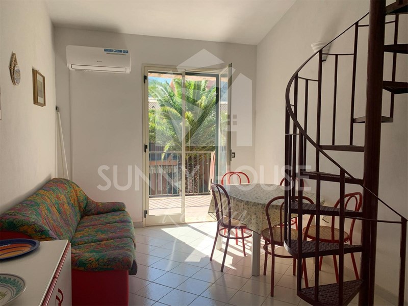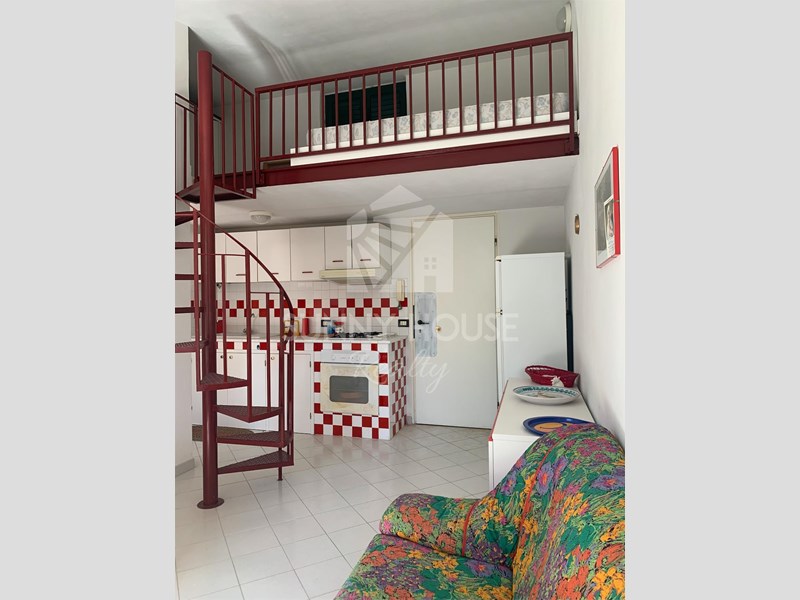 L’immobile, di 37 mq, è composto da un luminoso soggiorno con angolo cottura, una camera da letto, e un letto a soppalco che offre ulteriori posti letto in maniera funzionale. L’appartamento dispone di un ampio balcone, accessibile sia dal soggiorno che dalla camera da letto, da cui si può godere di una splendida vista sul mare e sul giardino condominiale.