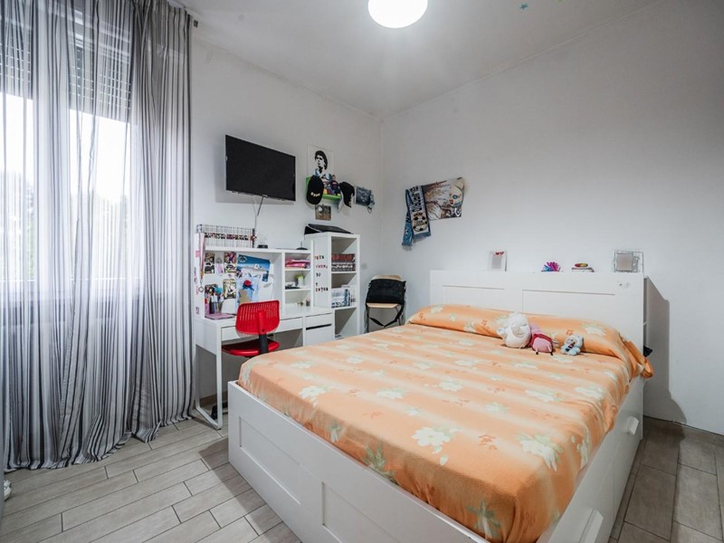 L’appartamento si sviluppa su un unico livello ed è composto da un luminoso soggiorno con accesso diretto alla loggia, cucina abitabile, due camere matrimoniali, un bagno finestrato completo, un secondo bagno ad uso lavanderia, anch’esso finestrato, e un comodo ripostiglio con finestra.