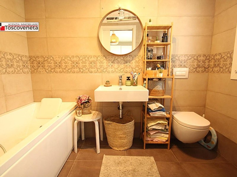 Le finiture di pregio: pavimenti in gres porcellanato, infissi in PVC con vetrocamera, tende veneziane elettriche, nei bagni sanitari sospesi.
