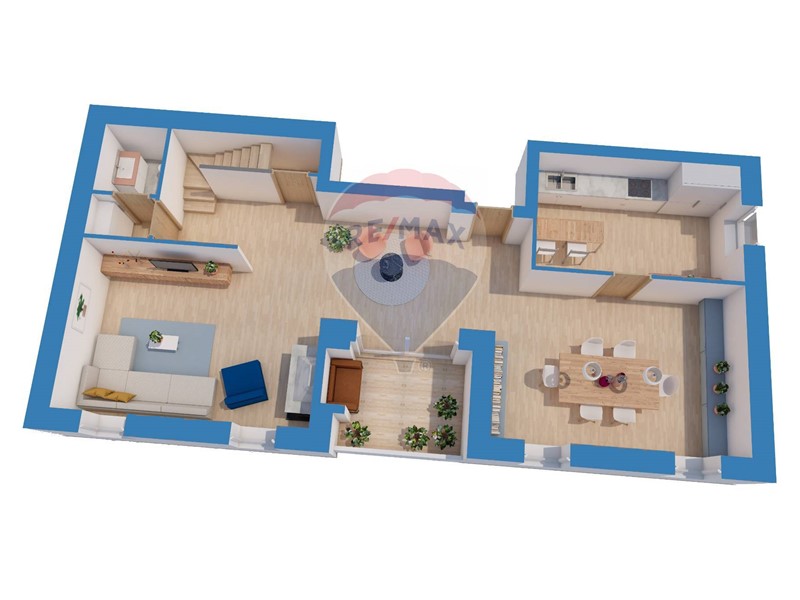 L'ampio salone è caratterizzato da soffitti ben rifiniti e da grandi vetrate che permettono una generosa quantità di luce naturale. La cucina separata dalla sala da pranzo è un ottimo spazio completamente personalizzabile.