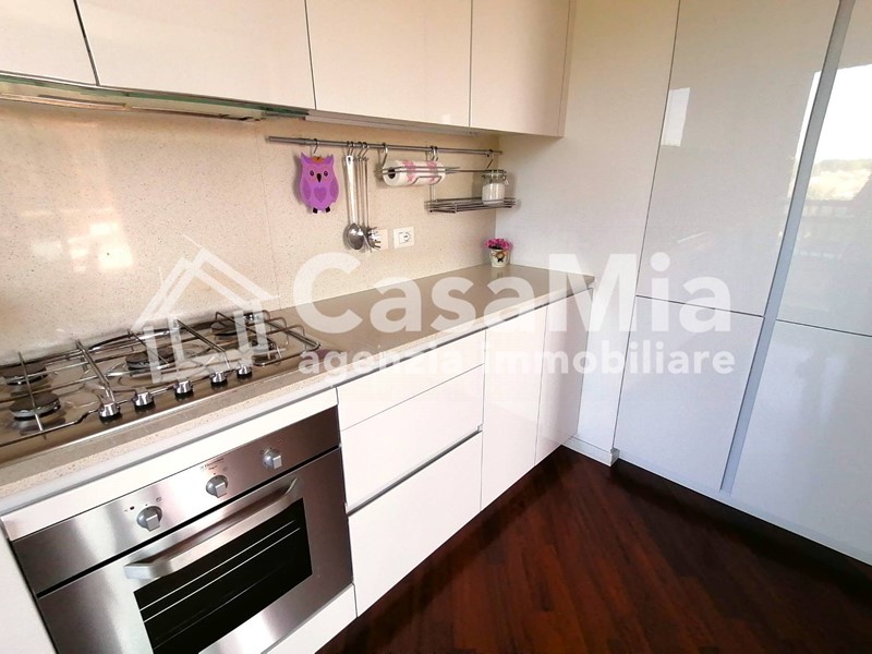 L'appartamento è sito al 3°piano con ascensore ed è molto luminoso, la zona giorno è rifinita in parquet ed è così composta: ingresso, cucina, soggiorno che permette l'accesso ad un bellissimo e ampio terrazzo, ideale per consumare pranzi all'aperto con gli amici e trascorrere piacevoli momenti di relax; il disimpegno zona notte conduce alla due spaziose camere da letto e ai doppi servizi, uno con vasca e uno con doccia.