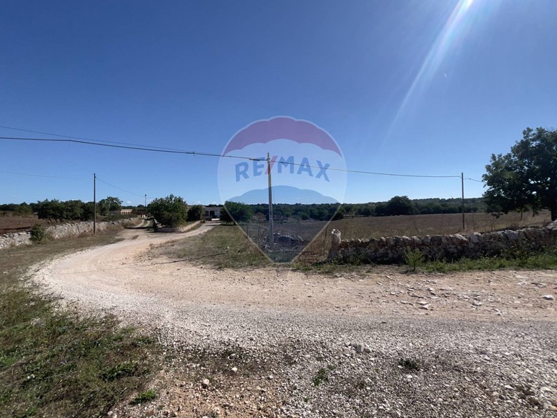 Il terreno agricolo, prettamente seminativo e con piccolo uliveto, è accessibile da strada principale asfaltata. Lintero compendio è delimitato da muretti a secco recentemente ripristinati. Entrostante il fondo agricolo insiste un cortile pavimentato dove sono dislocate le due abitazioni e uno dei depositi agricoli e due cisterne di raccolta delle acque piovane.