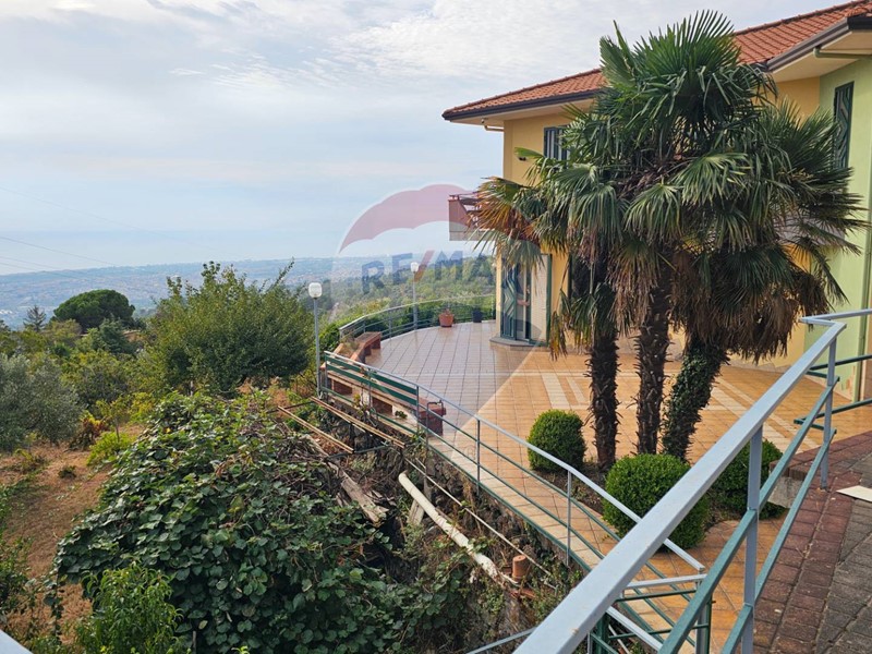 Immersa nel verde delle campagne etnee, questa elegante villa panoramica regala una vista mozzafiato sullEtna e sul Mar Ionio, ed è circondata da 2.800 mq di giardino, terrazze, uliveto e vigneto.