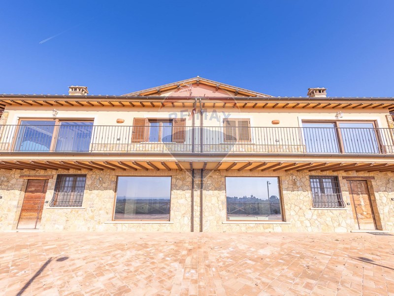 La proprietà è stata realizzata con materiali di pregio: rivestimenti in pietra umbra, pavimenti e patii in cotto trattato, travi a vista in castagno, infissi in PVC con vetrocamera, portoni in rovere massello e persiane blindate. È presente un sistema di allarme con telecamere di videosorveglianza e sensori interni ed esterni.