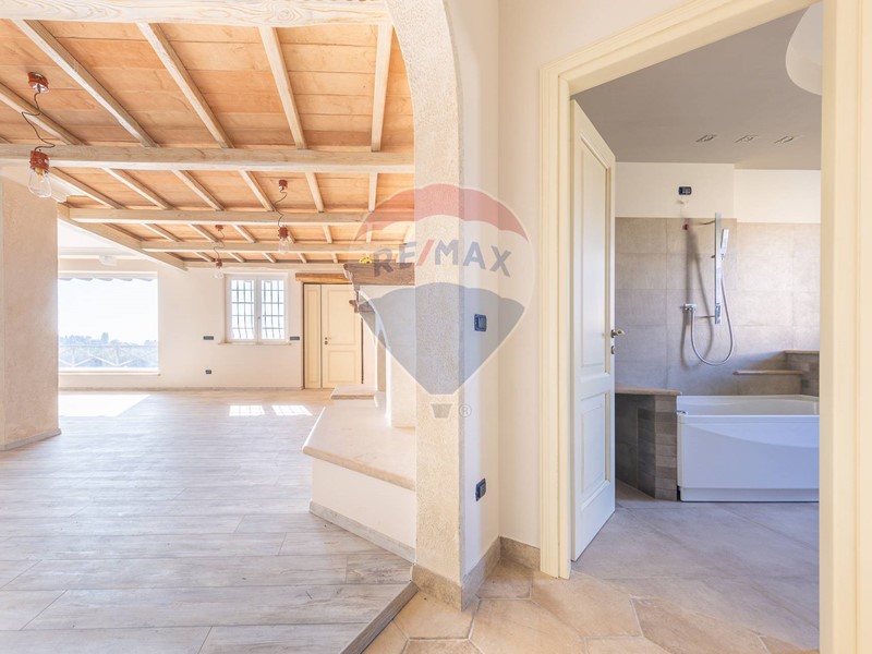 - Primo Piano: camera padronale con bagno privato e terrazzo panoramico, seconda camera mansardata, bagno con vasca idromassaggio e un locale versatile (studio o cabina armadio).