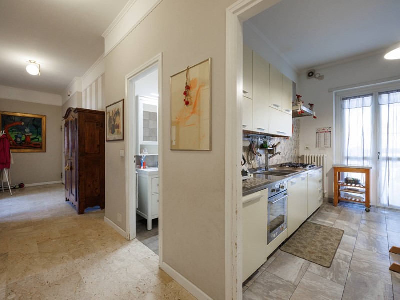 L'immobile è composto da ingresso su ampio disimpegno, salone doppio, cucina abitabile, due camere da letto e due bagni. Cantina di pertinenza.