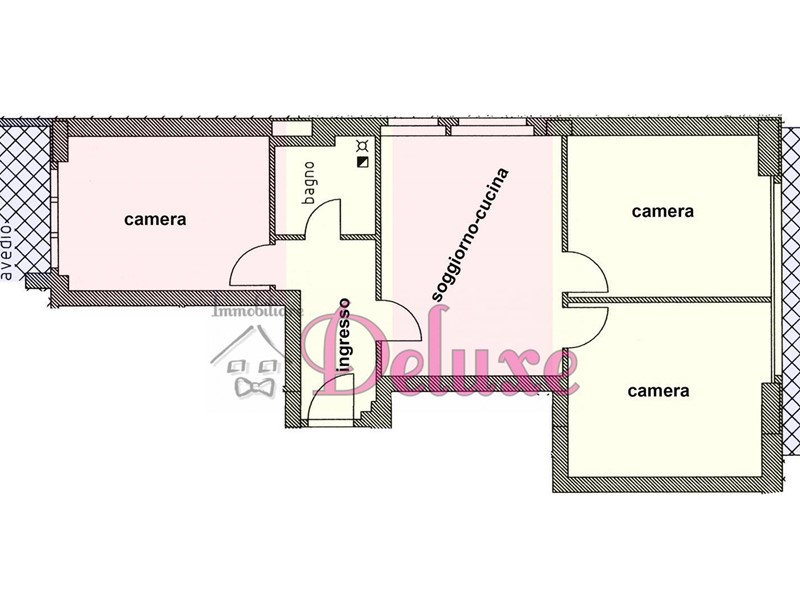 ingresso, cucina abitabile, salotto, 2 camere, bagno con doccia, balcone.