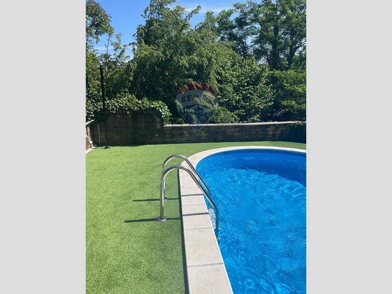 Termina la proprietà un giardino di circa 1000 mq totalmente recintato provvisto di cancello pedonale e cancello elettrico carrabile per accogliere diverse auto nell'area adibita a parcheggio. Inoltre l'area destinata a giardino accoglie anche un ampio garage e una bellissima piscina per le calde serate estive.