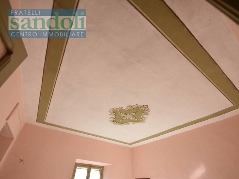 Di particolare importanza e bellezza sono i soffitti finemente affrescati e la splendida scala in marmo con ringhiera in ferro battuto e passamano in legno sagomato.