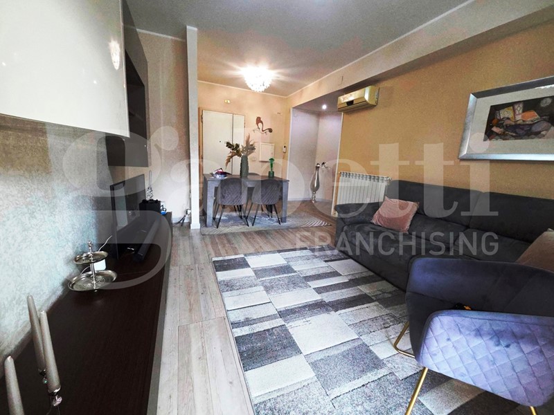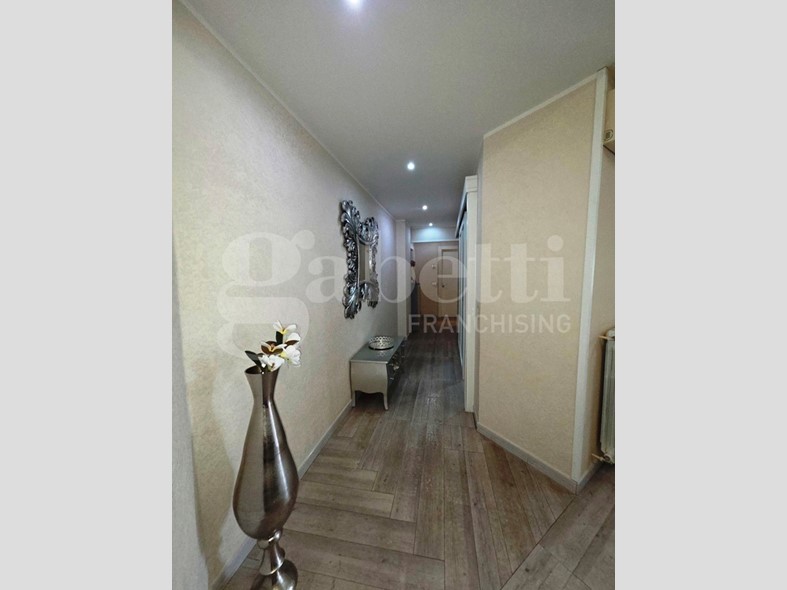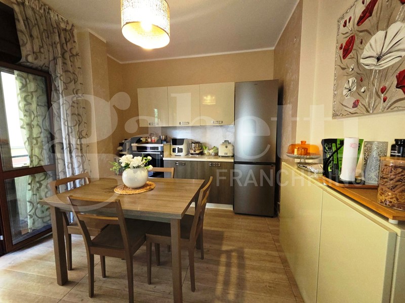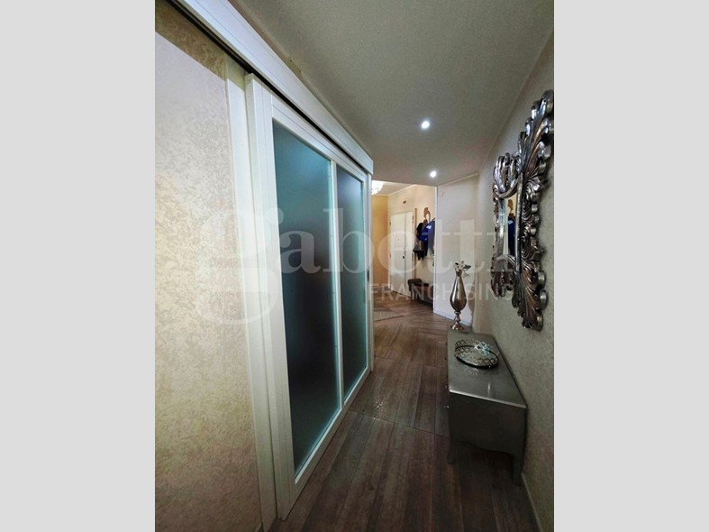 Le condizioni interne sono impeccabili, essendo stato recentemente ristrutturato con materiali di alta qualità. Gli infissi in PVC sono dotati di zanzariere, garantendo un'ottima luminosità e isolamento termico. La doppia esposizione dell'appartamento permette una buona ventilazione e luminosità naturale.