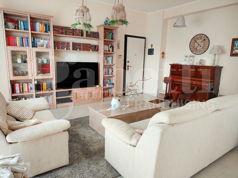 All'ingresso ci accoglie un'ampia zona living luminosa, composta da un ampio salone con cucina a vista spaziosa (eventualmente separabile).
