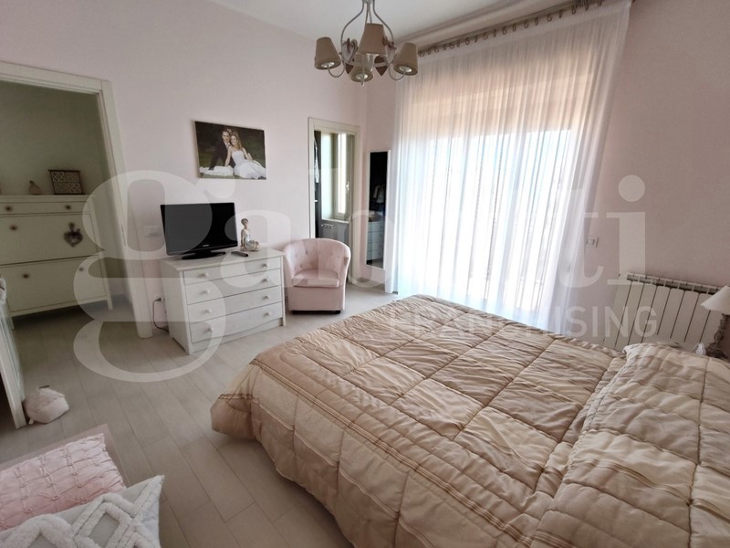 Di seguito abbiamo un corridoio che disimpegna la zona notte composta da due camere da letto, una cabina armadio (attualmente collegata alla camera matrimoniale), un bagno elegante completo di vasca e doccia, una lavanderia con lavastracci e wc. Gli infissi in alluminio bianco del tipo stondato, sono dotati di vetro camera (doppio vetro) e garantiscono un'ottima insonorizzazione e isolamento termico, mentre le zanzariere assicurano protezione dagli insetti.