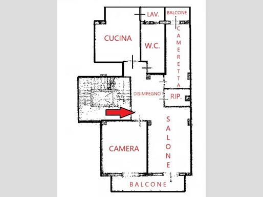L'appartamento ha doppia esposizione e tutti gli ambienti sono dotati di balcone, al suo interno è in buone condizioni ma le rifiniture sono risalenti agli anni della costruzione pertanto necessita di essere riammodernato.