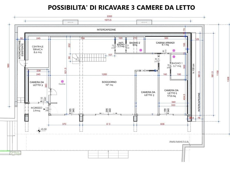 Attualmente è presente una grande camera da letto, ma la metratura e la disposizione degli spazi permettono facilmente di ricavarne fino a tre, adattando l'ambiente alle proprie esigenze familiari. Completano l'abitazione due bagni, un comodo antibagno, una cabina armadi e una palestra privata già realizzata all'interno della casa, uno spazio esclusivo per il benessere quotidiano.