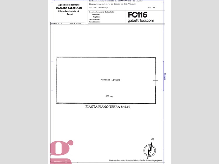 La proprietà consta di due fabbricati tra loro collegati, per complessivi 940 mq, una CAPANNONE di 530 mq, un ANNESSO di 72 mq ed un TERRENO AGRICOLO di 12,5 ha, di cui 8 ha seminativi e con circa 500 ULIVI.