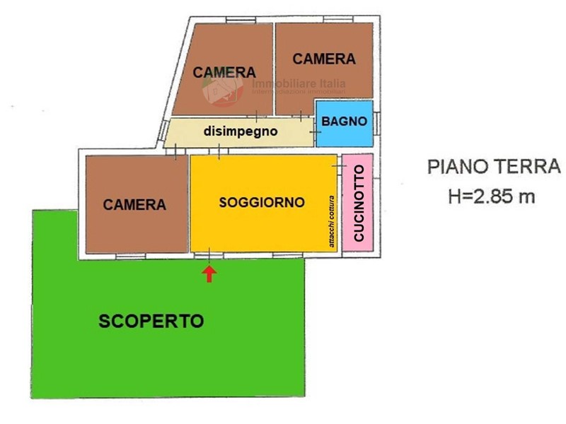 Si accede dal giardino di proprieta di circa 70mq, momentaneamente piastrellato con la presenza di una casetta di legno comoda come deposito.