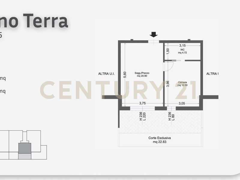La tipologia è quella di un bilocale con ingresso indipendente, posto al piano terreno centrale, caratterizzato da spazi moderni e funzionali. L’immobile si compone di soggiorno con sala da pranzo a vista, camera da letto matrimoniale e bagno.