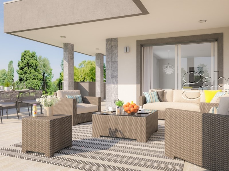 Immagina ampi interni che si affacciano su terrazzi soleggiati o giardini privati, perfetti per ospitare cene con gli amici, momenti di relax e giornate all’insegna del benessere anche con i tuoi amici a quattro zampe. Qui, ogni ambiente è studiato per regalarti qualità di vita senza compromessi.
