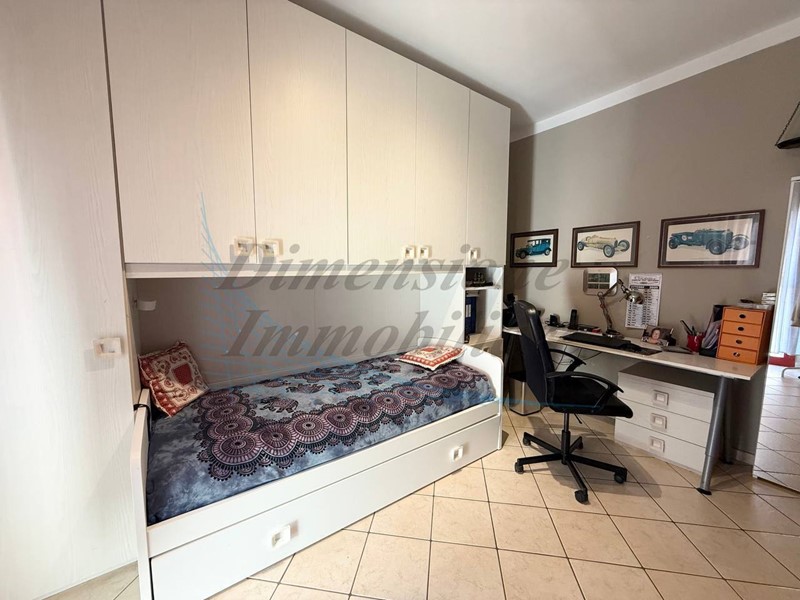 La zona notte, ben separata da un disimpegno, comprende una camera matrimoniale di generose dimensioni, una cameretta e un bagno finestrato con doccia.