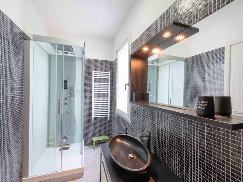 Le finiture sono di ottimo livello commerciale. Il riscaldamento è a pavimento nella zona abitazione e a radiatori nel seminterrato, il tutto alimentato da caldaia a pellet. Dispone inoltre di pannelli solari. Viene ceduta completa di mobilio di buona qualità arredamento del 2022.