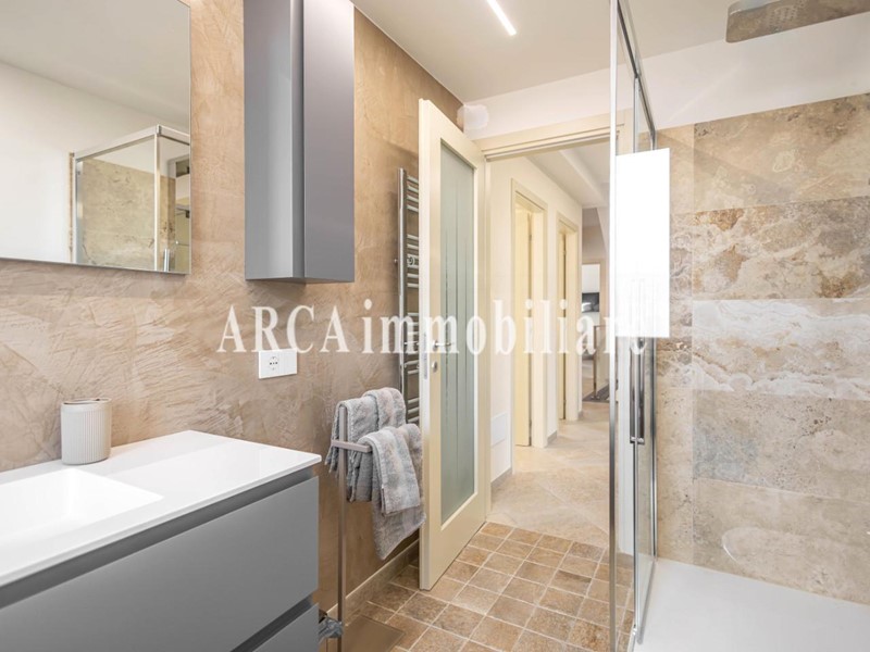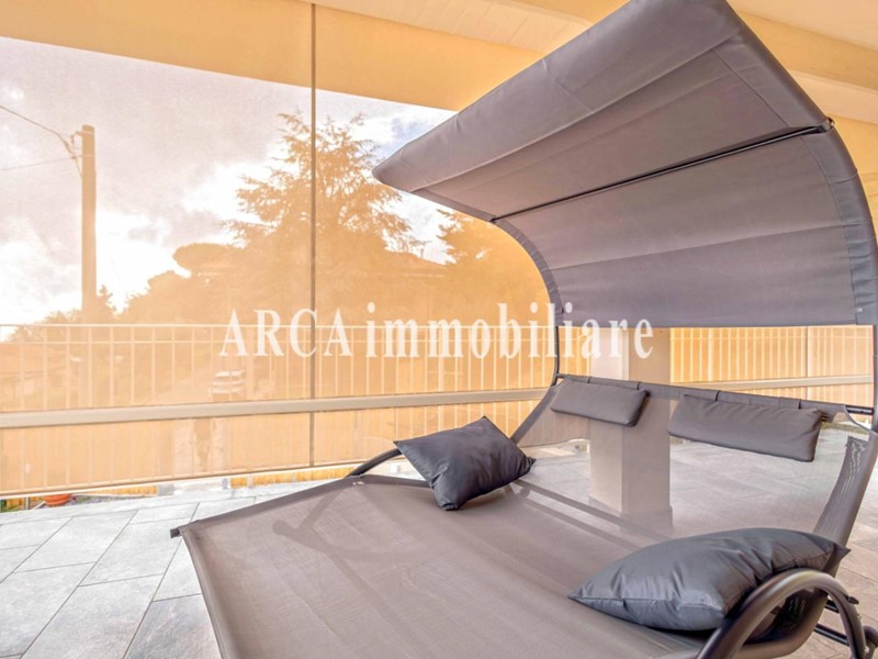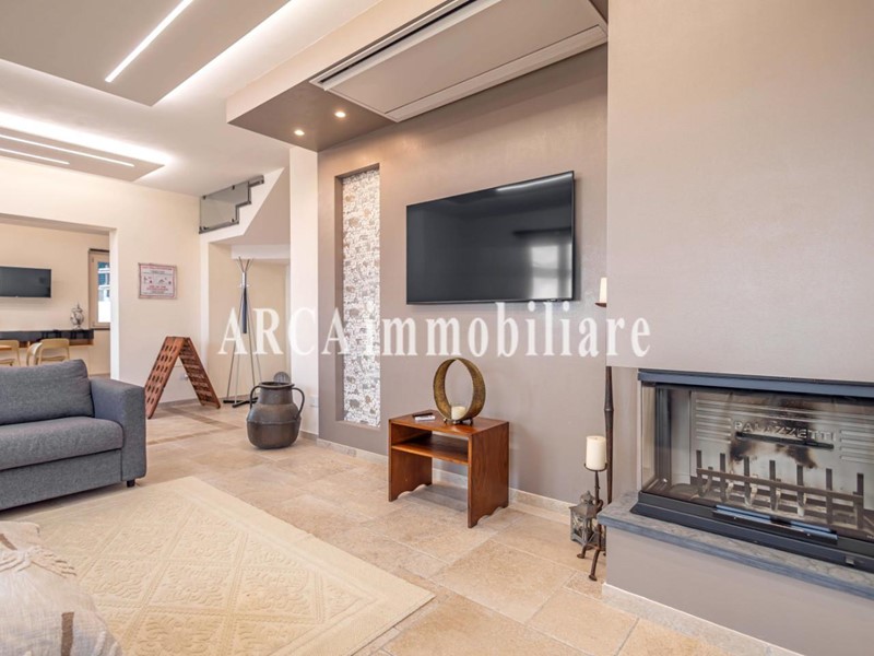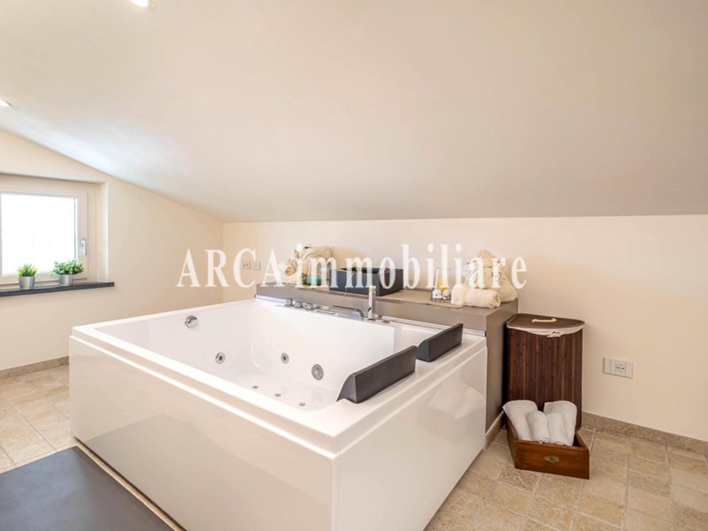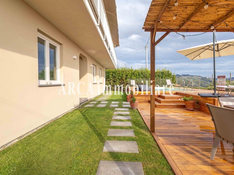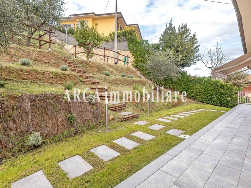 Esternamente la villa è circondata da un bel giardino curato, in parte disposto a balze, e arricchito da una piscina privata.