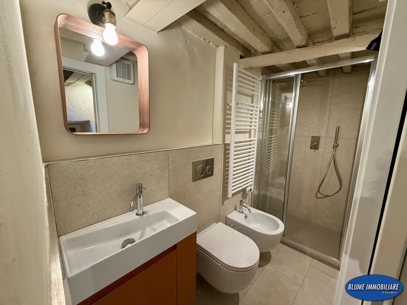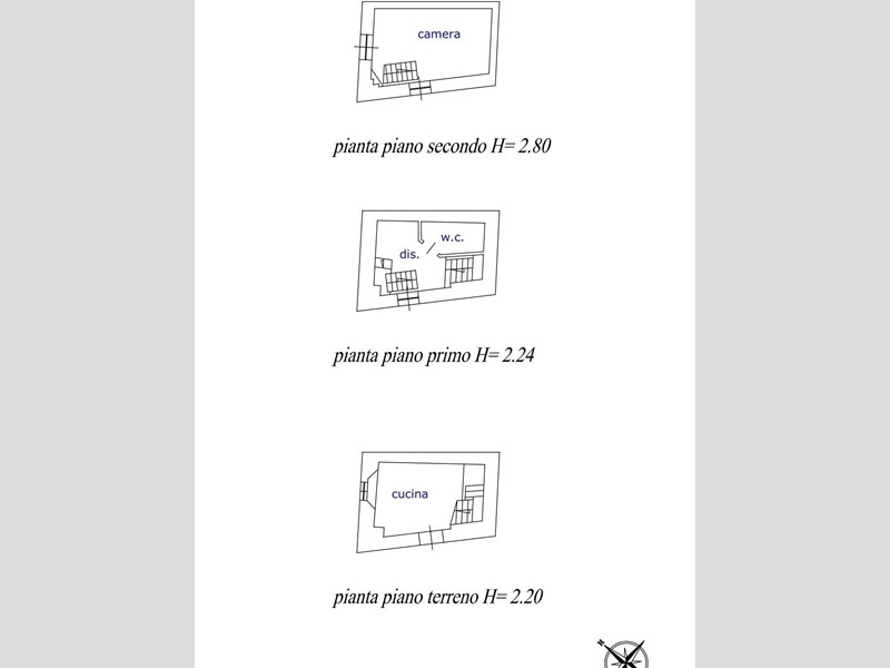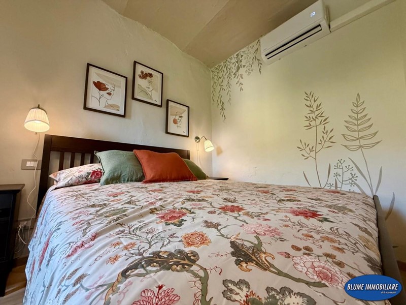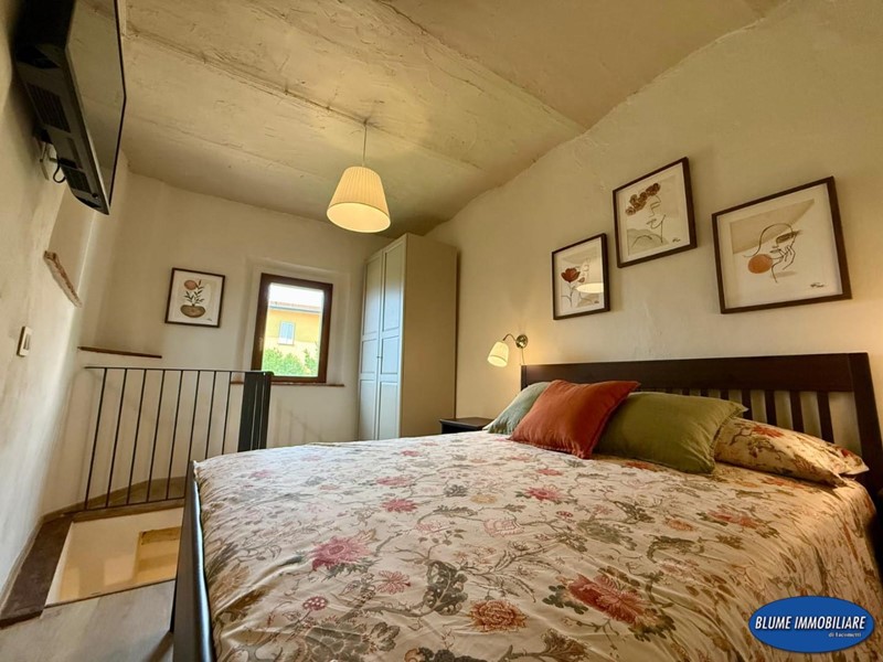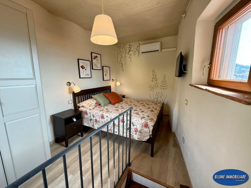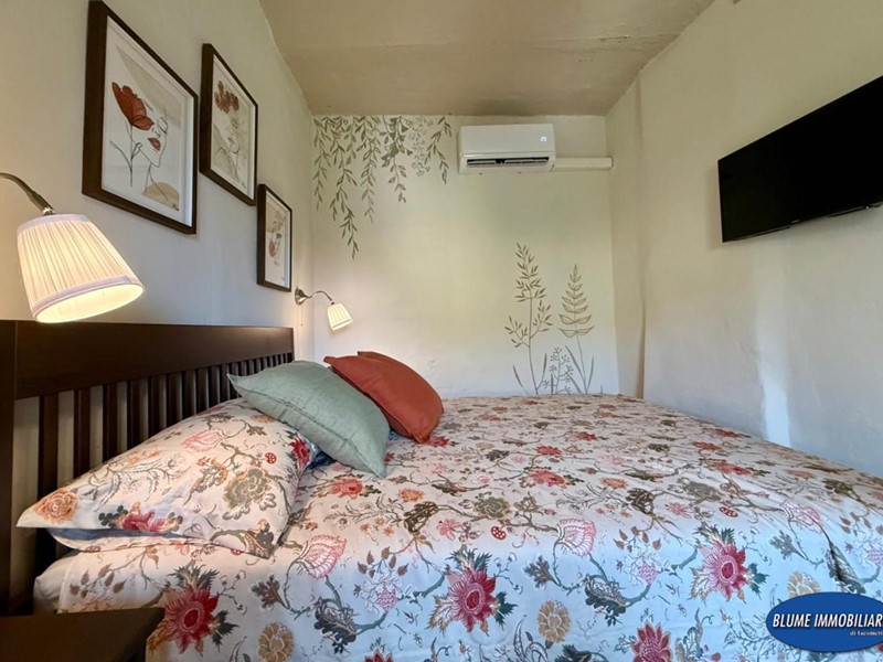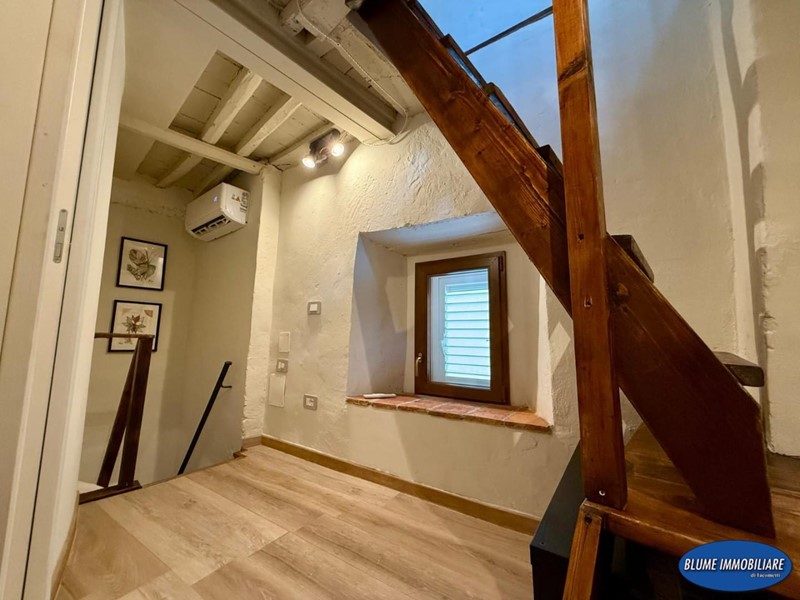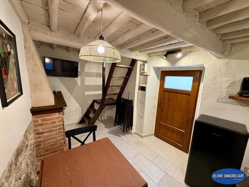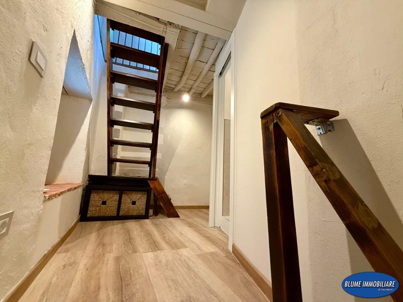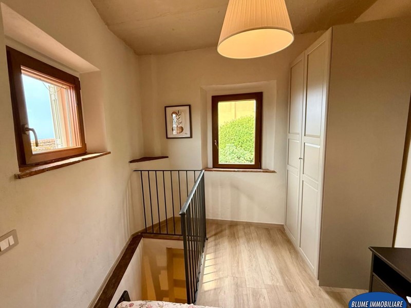 Con ingresso indipendente dalla via, è disposto su tre livelli e più precisamente: a piano terra si trova la zona giorno con soggiorno con caminetto e cucina a vista, una bela scala permette l'accesso al piano primo dove si un bel bagno con doccia e finestra, la scala prosegue al piano secondo con una bella camera matrimoniale con vista mare. L'immobile è completamente ristrutturato ed è dotato di aria condizionata, caminetto nel soggiorno, parquet e travi a vista.