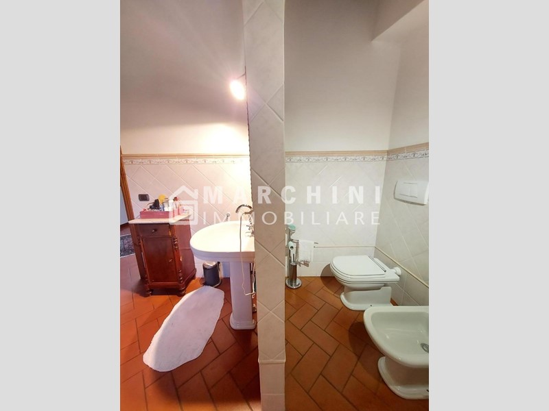 Le scale in pietra serena ci accompagnano al piano primo ed ultimo, ove troviamo la zona notte con 4 camere di cui 3 matrimoniali, ampie e luminose, due ripostigli, e due bagni entrambi finestrati di cui uno con vasca angolare.
