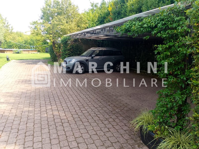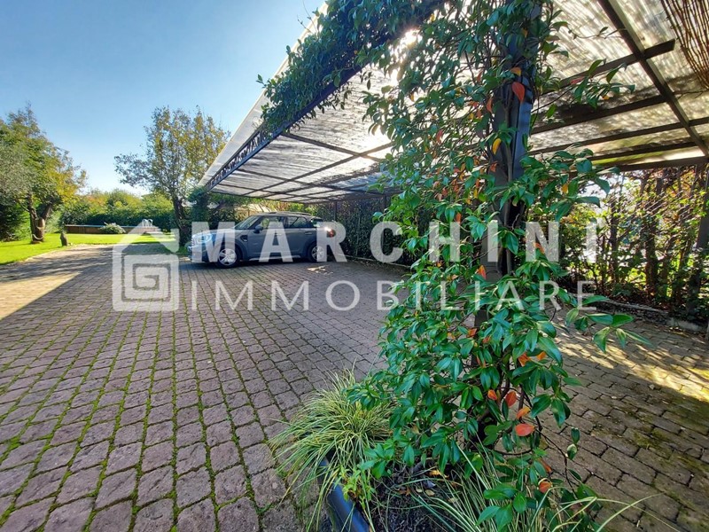 Si entra nella proprietà tramite un cancello elettrico di fattura artigianale, e ci troviamo subito all'interno del bellissimo giardino di 2000 mq completamente recintato, ove vi è una piscina ( 6x4 mt ), una piccola tettoia in muratura con forno e barbeque per le cene estive, tettoia in ferro zincato per almeno sei posti auto coperti.