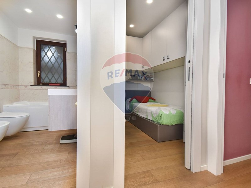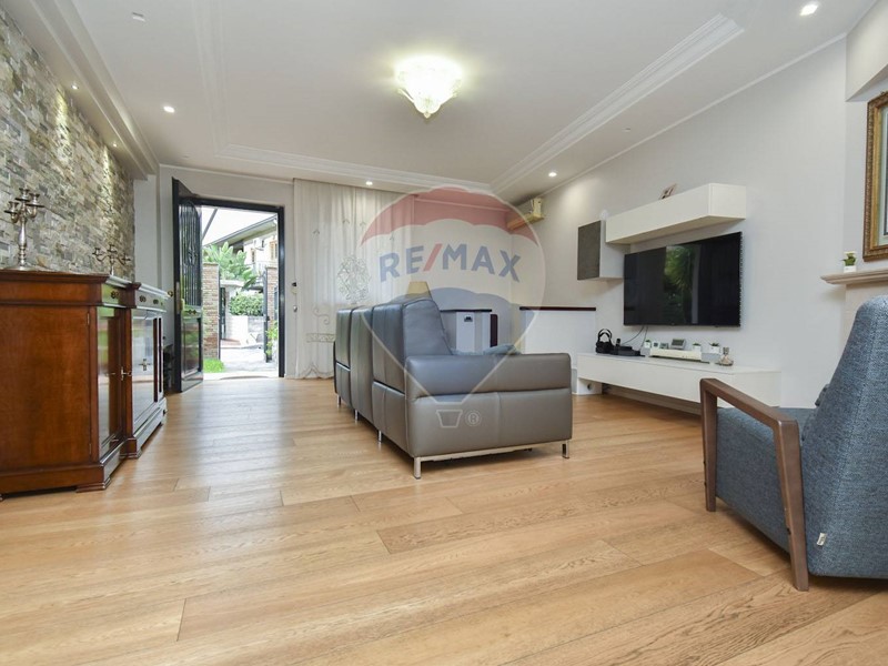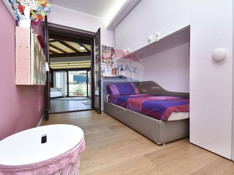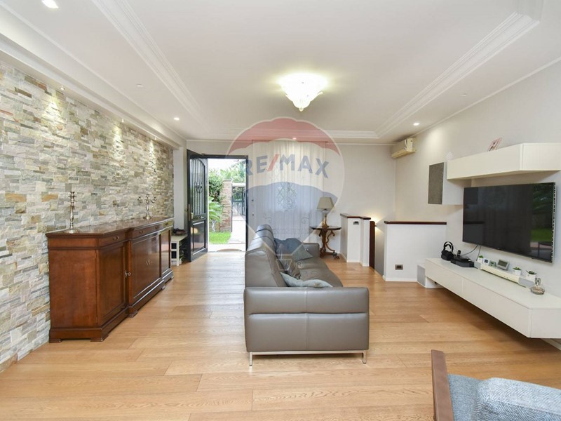 L'accesso dal piano strada è del tutto autonomo tramite un giardinetto di rappresentanza. Appena entrati in casa si è subito in un ambiente living con zona soggiorno dotata di un camino, che rende tutto l'ambiente caldo e accogliente, che si articola a seguire in una zona cucina comoda e moderna. Da qui si diparte un giardino d'inverno che dona luminosità e respiro e dal quale si accede al giardino privato retrostante di coltre 50 mq, un'oasi di tranquillità dove poter trascorrere piacevoli momenti all'aria aperta, grazie anche all'angolo barbecue che lo caratterizza, e dotato di moderni impianti di illuminazione e irrigazione. Dalla cucina si entra anche nella zona notte, composta da un bagno con confortevole vasca con idromassaggio, un'ampia camera matrimoniale, e due camerette. Dal soggiorno, tramite una scala interna, si scende nel locale sottostante, reso luminoso da ampi pozzi luce, che può essere utilizzata come studio o come quarta camera da letto, essendo servito da un bagno con box doccia e da un ripostiglio.