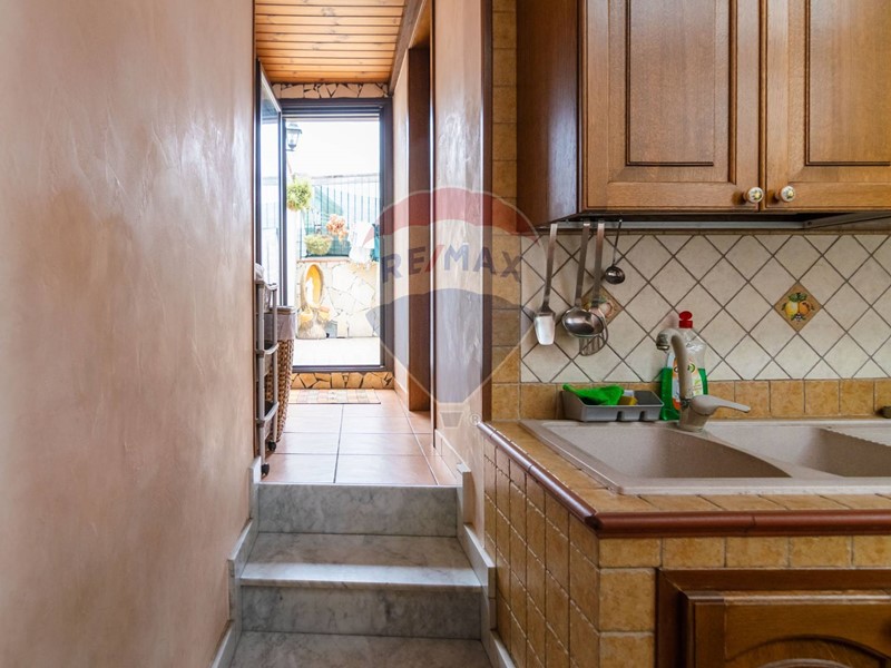 L'immobile, ubicato in Via Vittorio Emanuele III, è così composto: Ingresso su strada, l'androne si presenta caloroso e bene rifinito, è stato ricavato un comodo ripostiglio nel sottoscala, la scala ci porta al primo piano, dal disimpegno troviamo una camera matrimoniale dalle dimensioni generose, una cameretta, un bel bagno, salone ampio e luminoso con affaccio su Via Vittorio Emanuele III e con camino, di fianco abbiamo una bella cucina con affaccio sul balcone verandato dove è stato ricavato un angolo cottura con cucina in muratura, di seguito troviamo disimpegnato il secondo servizio e l'affaccio sul terrazzino a livello, perfetto per momenti di relax in famiglia, dal corpo scala accediamo al piano superiore dove troviamo la terrazza di circa 100 metri quadrati e un ulteriore locale dove poter creare un angolo cottura per piacevoli grigliate estive.