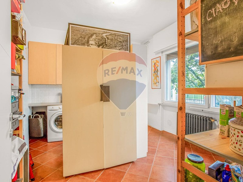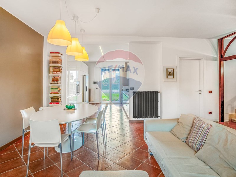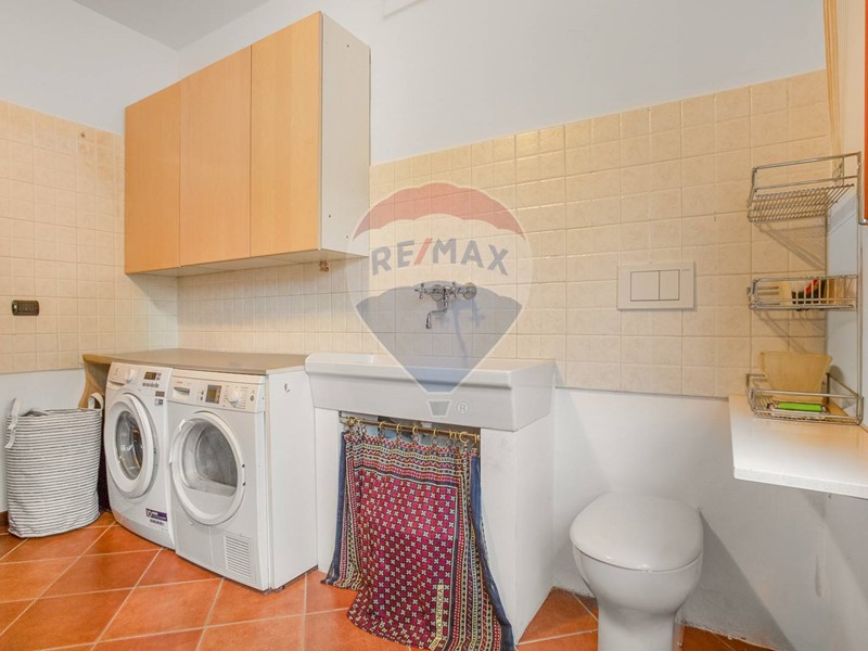 Al piano terra un ingresso con comoda zona living adiacente alla cucina separata di ampie dimensioni con accesso diretto al giardino, un disimpegno per la zona notte che precede il bagno padronale con sanitari sospesi e piatto doccia walk in ed una spaziosa e luminosa camera matrimoniale. Completa il piano terra un comodissimo e molto ricercato locale lavanderia di 14 mq. con WC e finestra a tripla anta.