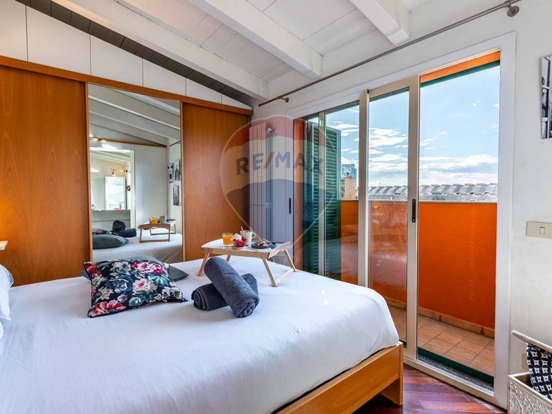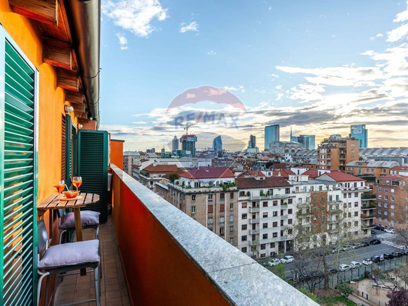 Proponiamo in locazione un bilocale arredato posto allultimo piano di uno stabile depoca con portineria e ascensore. Un accurato progetto di ristrutturazione ha ottimizzato gli spazi: soggiorno fruibile con cucina completa e attrezzata; camera separata da due porte scorrevoli a scomparsa integrate nella parete libreria; antibagno ad uso lavanderia e bagno con box doccia, ripostiglio in quota e finestra Velux motorizzata. Soggiorno e camera affacciano su un balcone panoramico con vista sullo skyline di Milano; lesposizione a ovest regala splendidi tramonti.