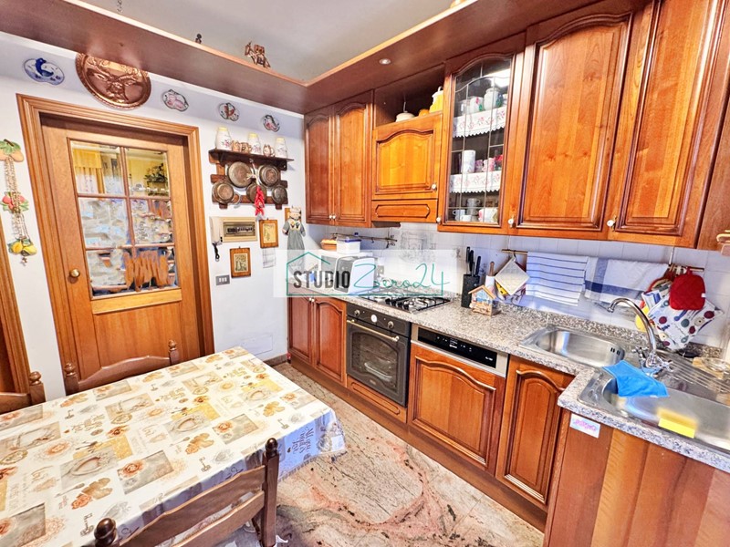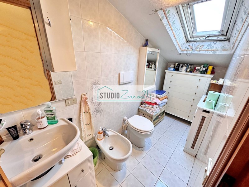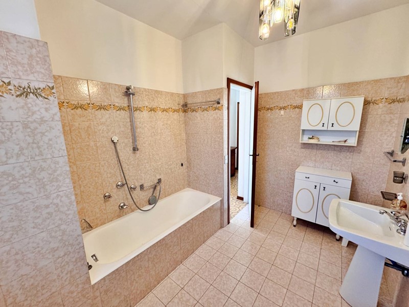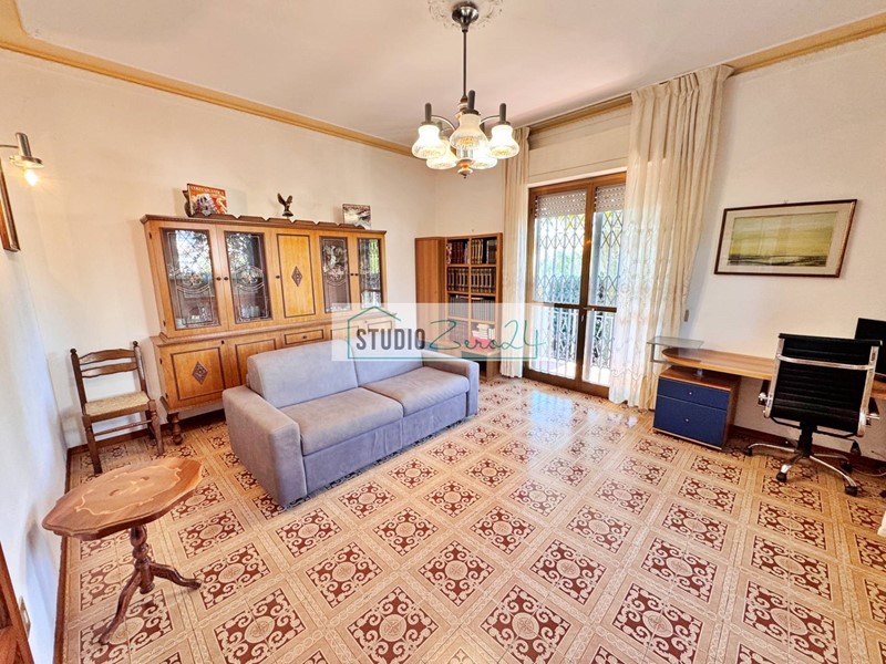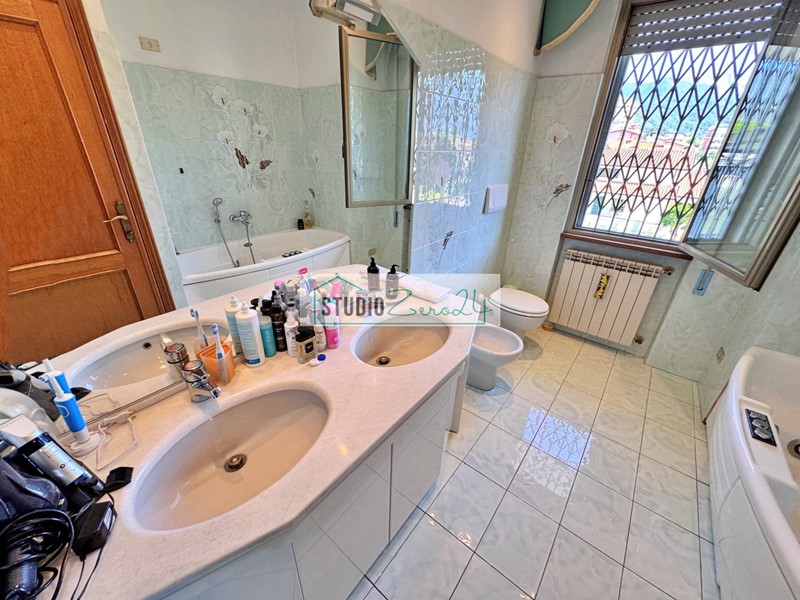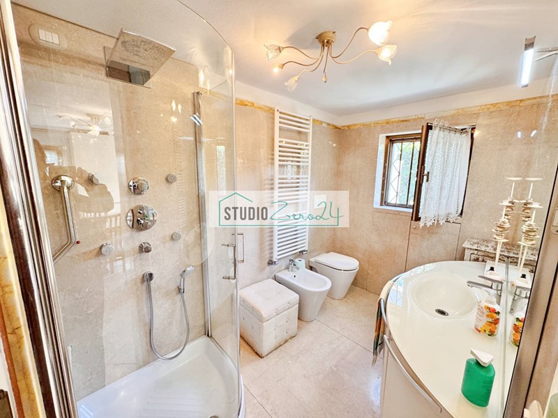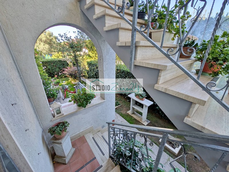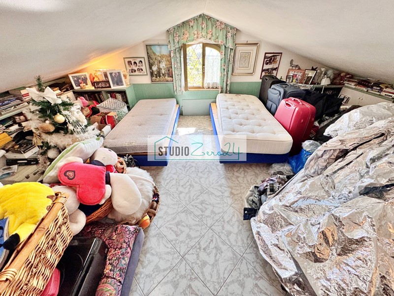 La seconda unità, al piano primo con accesso da scala esterna, è composta da ampio soggiorno con balcone, cucina abitabile con vano ripostiglio-dispensa, due camere ed un bagno al piano mezzanino e al piano mansardato altre due camere di cui una matrimoniale con bagno en suite. A corredo vano soffitta ad uso ripostiglio.