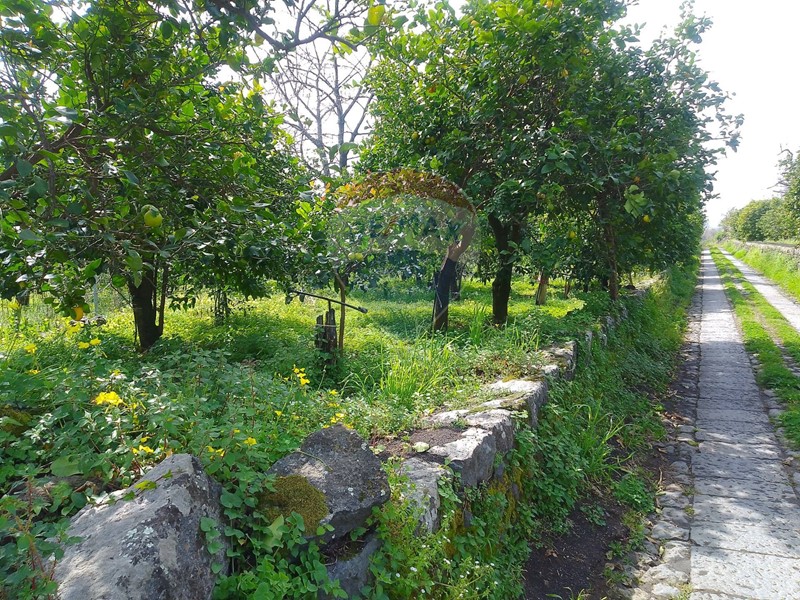 Terreno agricolo di 4990 mq, interamente pianeggiante, regolare, con accesso dalla via Trieste tramite strada carrabile a cui accedono soltanto i proprietari; terreno particolarmente umido e fertile, piantumato e messo a reddito con agrumi e altri alberi da frutto, presente impianto idrico perfettamente funzionante. E' possibile sfruttare l'indice di edificabilità dello 0,03.