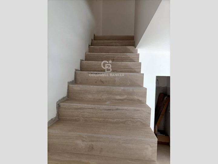 Piano superiore: due camere da letto con bagno e balconi, raggiungibili tramite elegante scala in marmo.