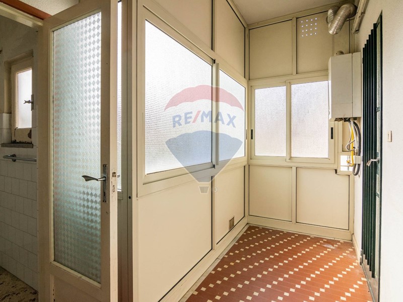 saletta d'ingresso, ambiente doppio cucina-soggiorno, tre camere grandi, una cameretta, bagno, lavanderia, terrazzino con veranda.