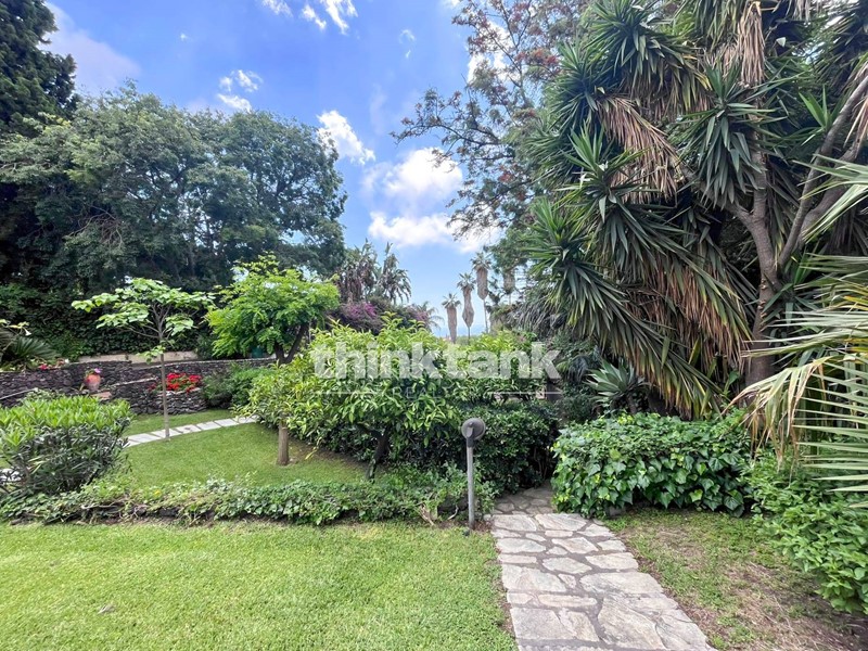 Giardino curato e rigoglioso, arricchito da piante tropicali, siepi e fioriture stagionali
