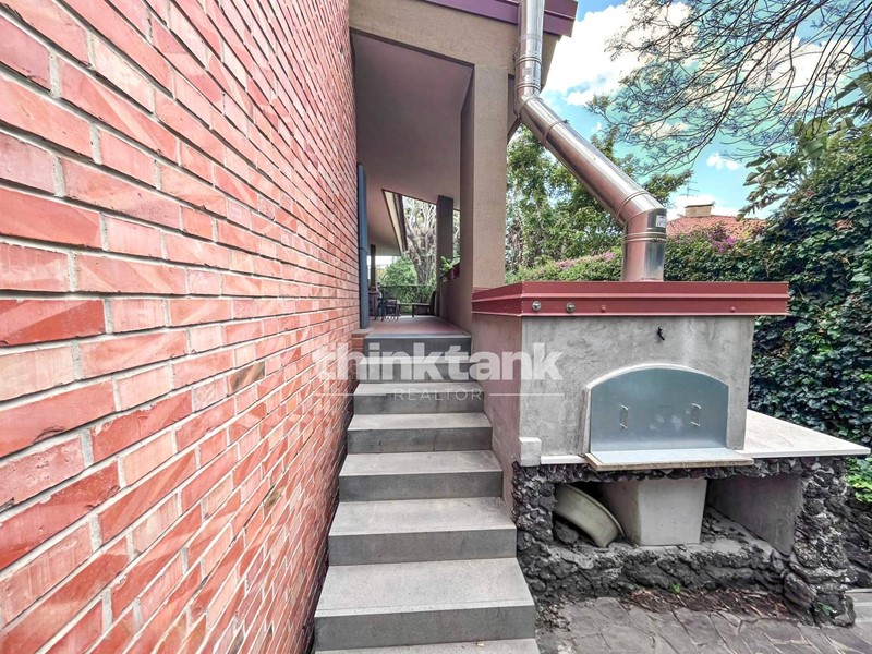 Camminamenti in pietra, area barbecue, camino e forno a legna