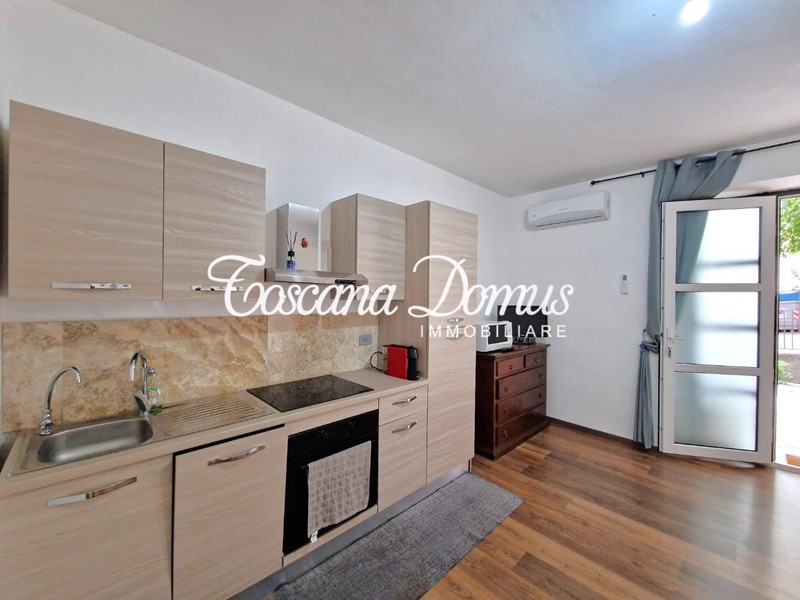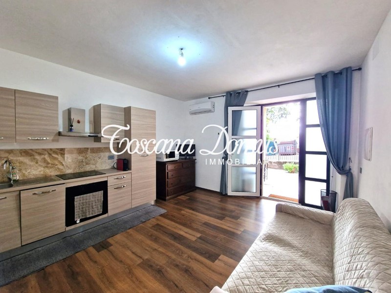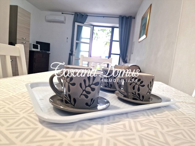 L'appartamento, che gode di un ampio spazio esterno privato dove trascorrere piacevoli serate in compagnia, vede al suo interno un ambiente unico dove sono presenti la cucina in linea con il mobile TV, lo spazio per il divano/letto e la zona pranzo, oltre ad un ulteriore spazio dove posizionare un mobile per il contenimento, una bella camera m atrimoniale completamente arredata ed il bagno finestrato completo di box doccia. La casa è dotata di caldaia a condensazione e impianto di climatizzazione estiva.
