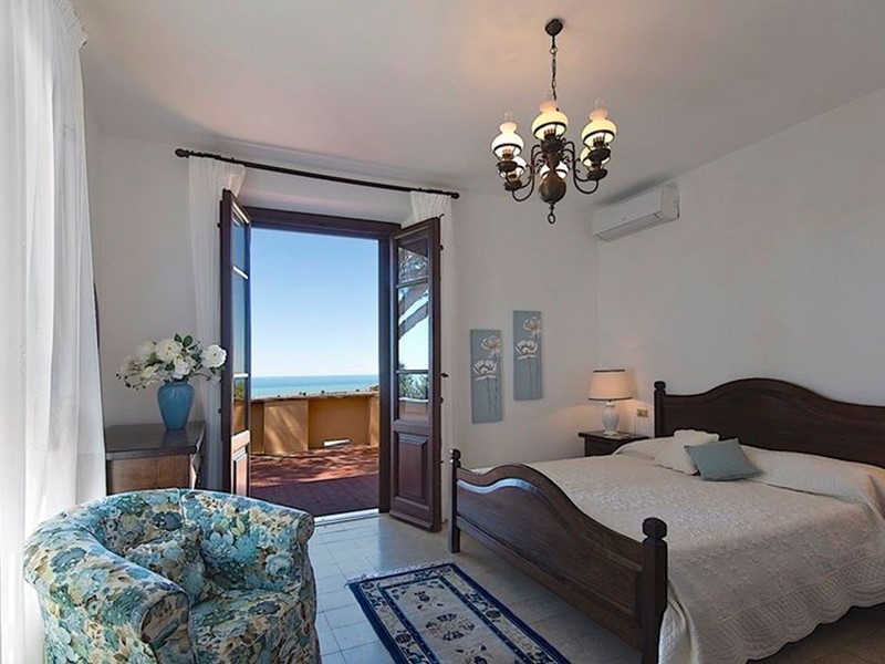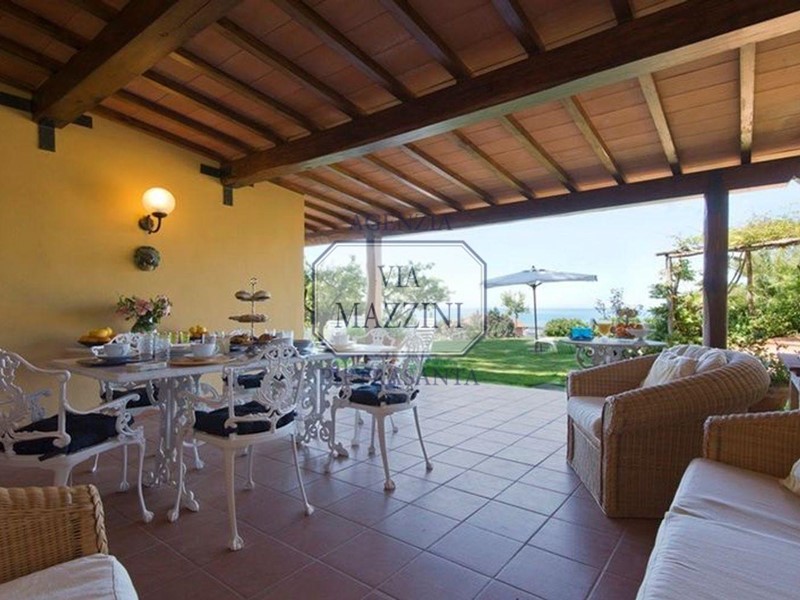 Questa accogliente ed elegante dimora è immersa nel verde tipico di queste zone a 316 mt sul livello del mare, con olivi secolari e frutteti che trovano in questa posizione il loro habitat naturale per il clima mite tutto l’anno, è circondata da 2 ettari di terreno distribuiti tra oliveto e vigneti, oltre zone a prato e verde tipico della zona, perfette per godere della massima tranquillità. Adiacente alla casa, vicino alla zona dedicata al parcheggio, si trova un’area per volley e un bocciodromo. Sotto il porticato attrezzato con barbecue, tavolo da pranzo e salottino in vimini dove si gode della bellissima vista mare e della piscina a sfioro dove su tutti i lati domina lo strepitoso panorama, di forma rettangolare con misura mt 12x6 e profondità variabile da 0,80 m a 2m. zona solarium intorno alla piscina dotata di spogliatoio, lettini, sdraio ed ombrelloni.