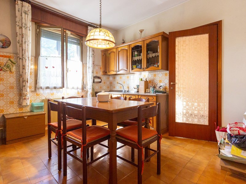Piano terra: portico esterno, ingresso, cucina abitabile, soggiorno/pranzo; nella zona notte ci sono 3 camere di ampia superficie e un bagno;