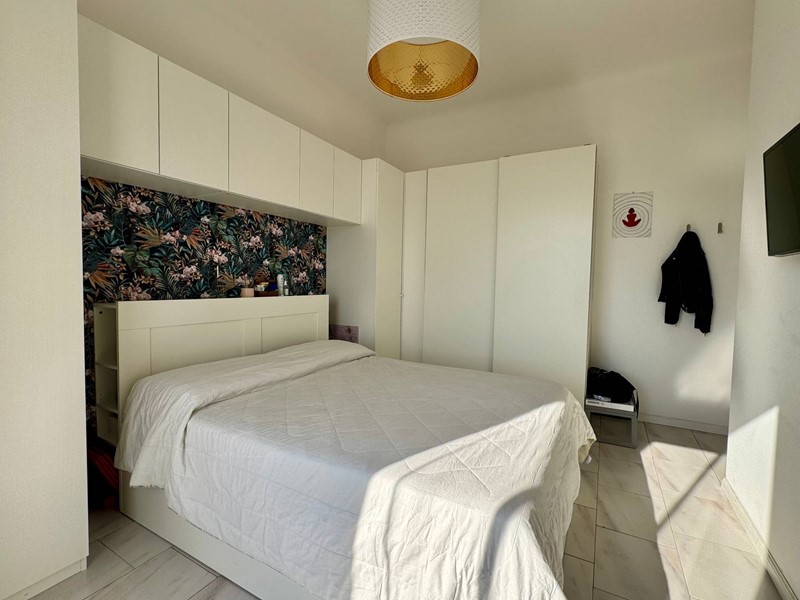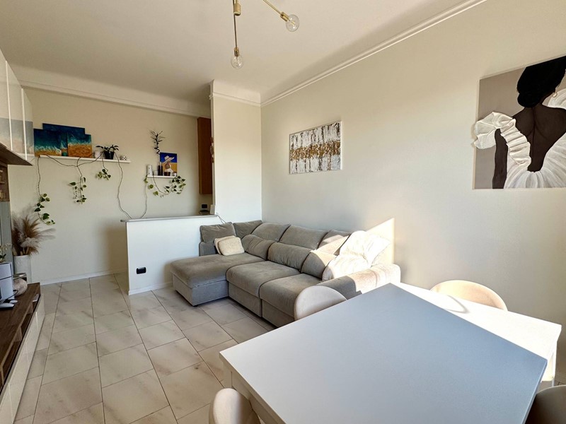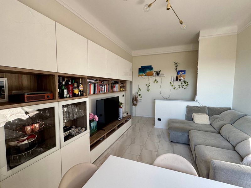 Accedendo dalla porta blindata troviamo lo spazioso soggiorno (20 mq ca). Dal disimpegno, dove troviamo un comodo armadio a muro utilizzato come ripostiglio, è possibile raggiungere la spaziosa cucina, ove poter collocare un tavolo, la camera matrimoniale (che gode di accesso al balcone angolare) ed il bagno con vasca (oggetto di recente e totale riqualificazione).