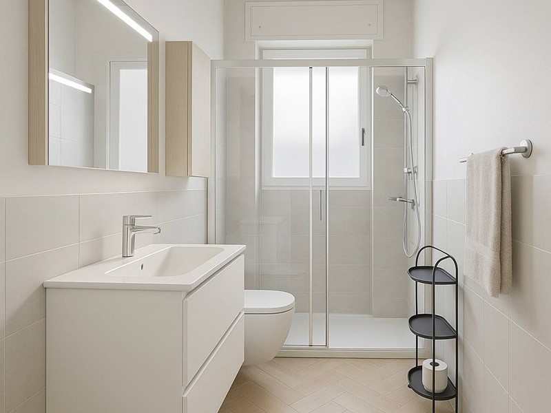 Un bagno funzionale, con facilita possibilita' di ricavare in una delle camere il secondo bagno padronale adiacente al primo.