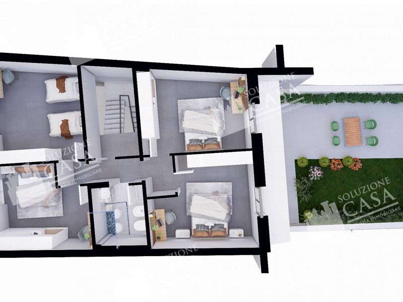 La zona notte è composta da: 8 camere da letto, distribuite su due piani, ognuna arredata, dotata di letti comodi e spaziosi armadi. Ogni piano dispone di un comodo bagno con doccia in modo da garantire il massimo comfort per gli abitanti della casa.