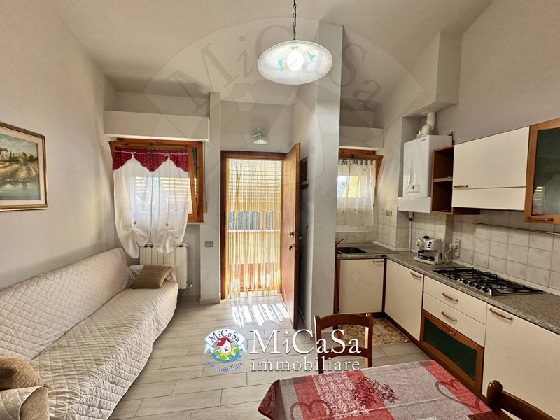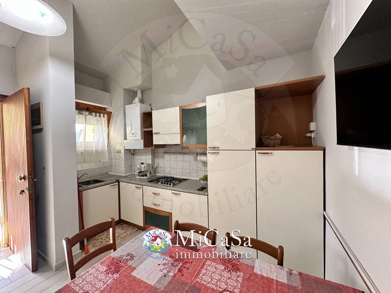 Composto al primo piano da ingresso in soggiorno con angolo cottura, bagno con box doccia e camera media con letto matrimoniale . Al piano soppalcato troviamo camera e bagno di servizio.