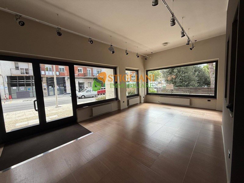 Zona semicentrale, con molta visibilità e traffico pedonale e veicolare, locale commerciale fronte strada, di metri quadrati 210 circa, composto da due ampi vani, bagno e antibagno. Tre ampie vetrine fronte strada. Impianto di riscaldamento autonomo. Possibilità di ulteriori metri quadrati 230 adiacenti. 10,00/mq