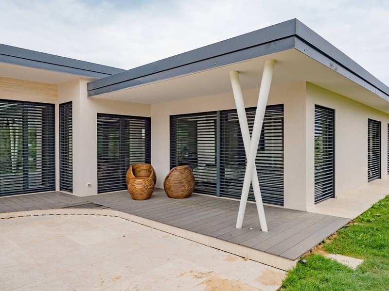 L'Immobiliare Unika propone in esclusiva di vendita nel Comune di Fermo (FM), in posizione panoramica, immersa nelle affascinanti colline fermane, splendida villa realizzata con eccellente e ricercata architettura di circa 300 mq con grandi spazi esterni a servizio di tutti gli ambienti. Trattasi di una rara soluzione abitativa che si compone di ambienti interni raffinati e funzionali con ampio soggiorno all'ingresso, sala da pranzo con cucina a vista e studio. Proseguendo nella zona notte troviamo il disimpegno che comprende una grande camera padronale con cabina armadio e bagno interno privato, ulteriori due camere e bagno finestrato. Scendendo al piano interrato troviamo una comoda lavanderia ben organizzata e un bagno con finestra. Completa la proprietà un ampio garage, che comprende due posti auto, La proprietà gode di un bellissimo giardino dotato di bosco verticale per piante aromatiche, completo di vasca idromassaggio con vista mare, e di un lastrico solare di grande fascino e potenziale di circa 120 mq, attualmente non attrezzato, che può trasformarsi in un raffinato solarium con vista, area relax o terrazza panoramica privata, ideale per chi desidera personalizzare e ampliare gli spazi esterni. La soluzione è dotata di impianti di altissima efficienza energetica e sistemi di automazione di ultima generazione, riscaldamento e raffrescamento a pavimento, sistema di ventilazione meccanizzata controllata, domotica avanzata con gestione touch screen di illuminazione, temperatura e frangisole orientabili, placche luce touch screen nella zona giorno, impianto di aspirazione centralizzato, impianto di allarme volumetrico e perimetrale con sensori laser integrati negli infissi e vasca di raccolta per l'acqua piovana, utile per l'irrigazione del giardino. L'immobile è il risultato di un progetto costruttivo all'avanguardia con fondazioni e piano interrato in cemento armato, struttura in elevazione in legno con sistema X-Lam, cappotto termico in lana di roccia all'esterno e in lana di vetro all'interno, garantendo solidità, isolamento termico e acustico, nel rispetto dell'ambiente. Ideale per chi è in cerca di una soluzione abitativa elegante, caratterizzata da un design moderno e minimalista, con grandi ambienti vivibili e spazi esterni attrezzati in un contesto indipendente, unico e riservato, lontano dal caos cittadino. Immobile di rara reperibilità, in posizione eccellente, a due passi da tutti i servizi e pochi chilometri dal mare. Ulteriori informazioni, book fotografico e dettagli presso il nostro studio. Classe energetica "A4". RIF. VV414. Immobiliare Unika 0734 300555 - 3271687900.