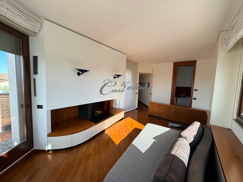 FIGINO SERENZA: appartamento di c.a. 105 mq posto al terzo ed ultimo piano composto da: ingresso, soggiorno con camino, sala da pranzo, cucinotto, disimpegno, due camere da letto, bagno e studio. Terrazzo c.a. 40 mq. Balcone. Cantina c.a. 10 mq. Autorimessa doppia. Arredi fissi inclusi della richiesta.